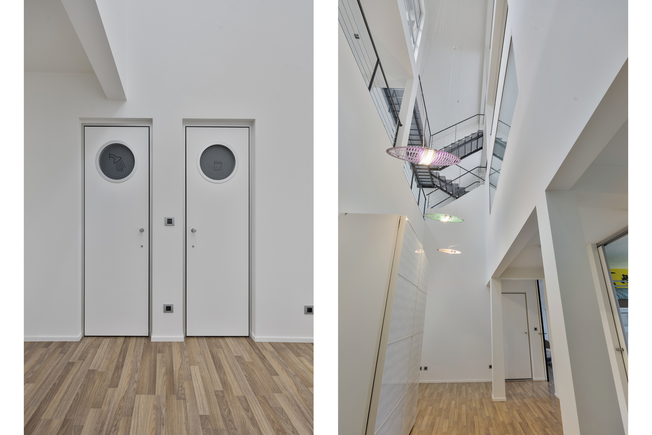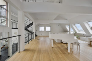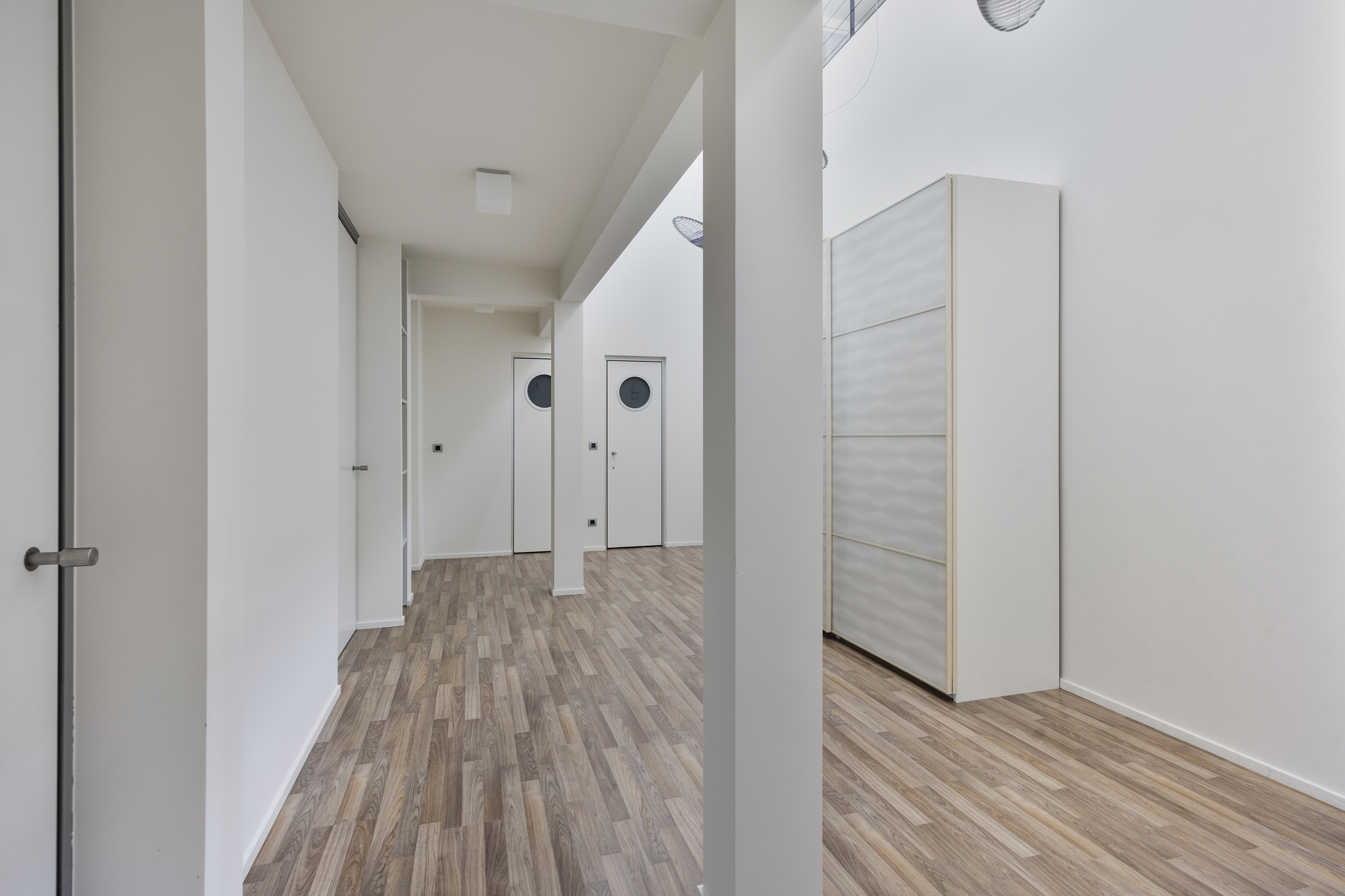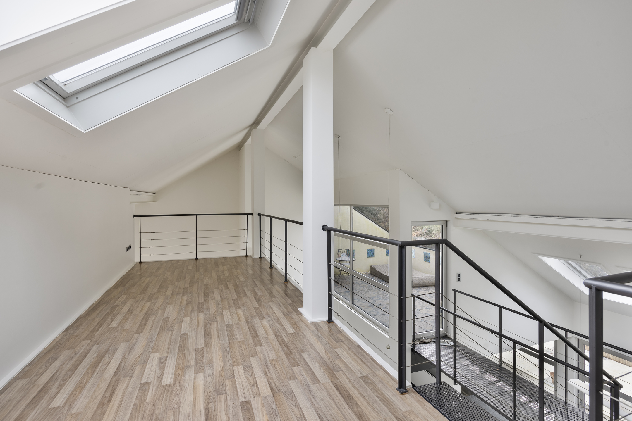 - Niveau +1,5: polyvalente ruimte van 42 m2 . Ingemaakte kasten. Kurkvloer. Vrij beroep, praktijkruimte, bureau, speelruimte,.......