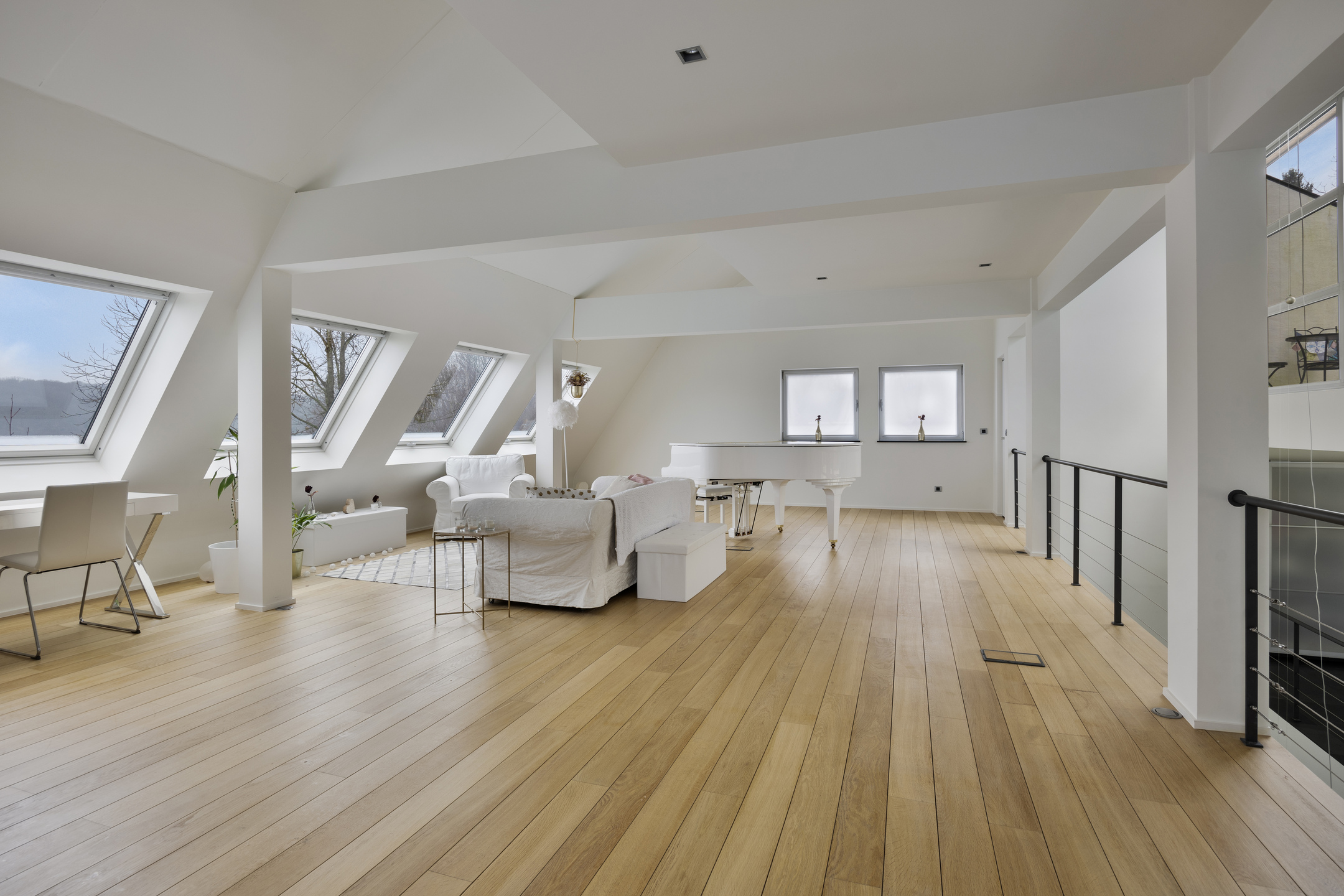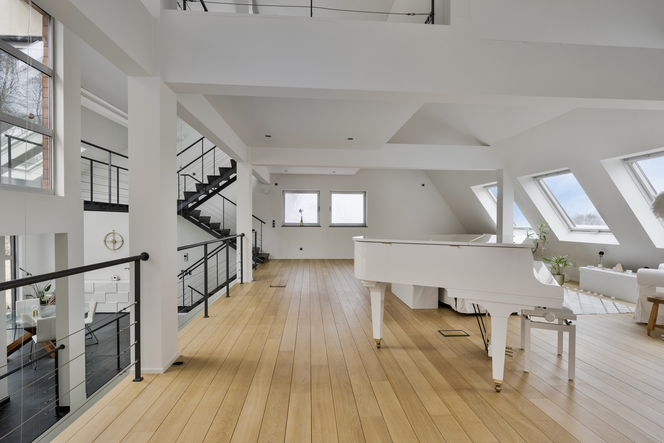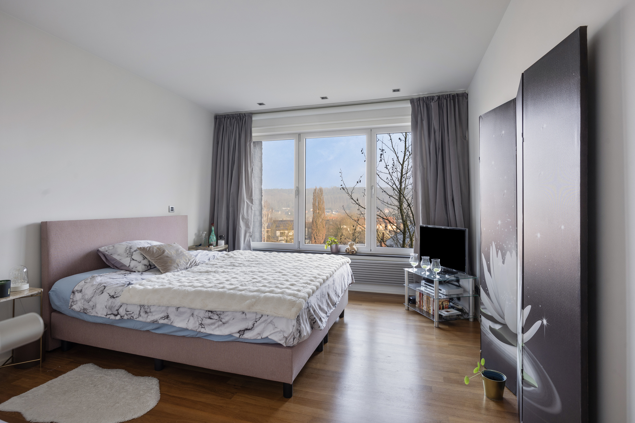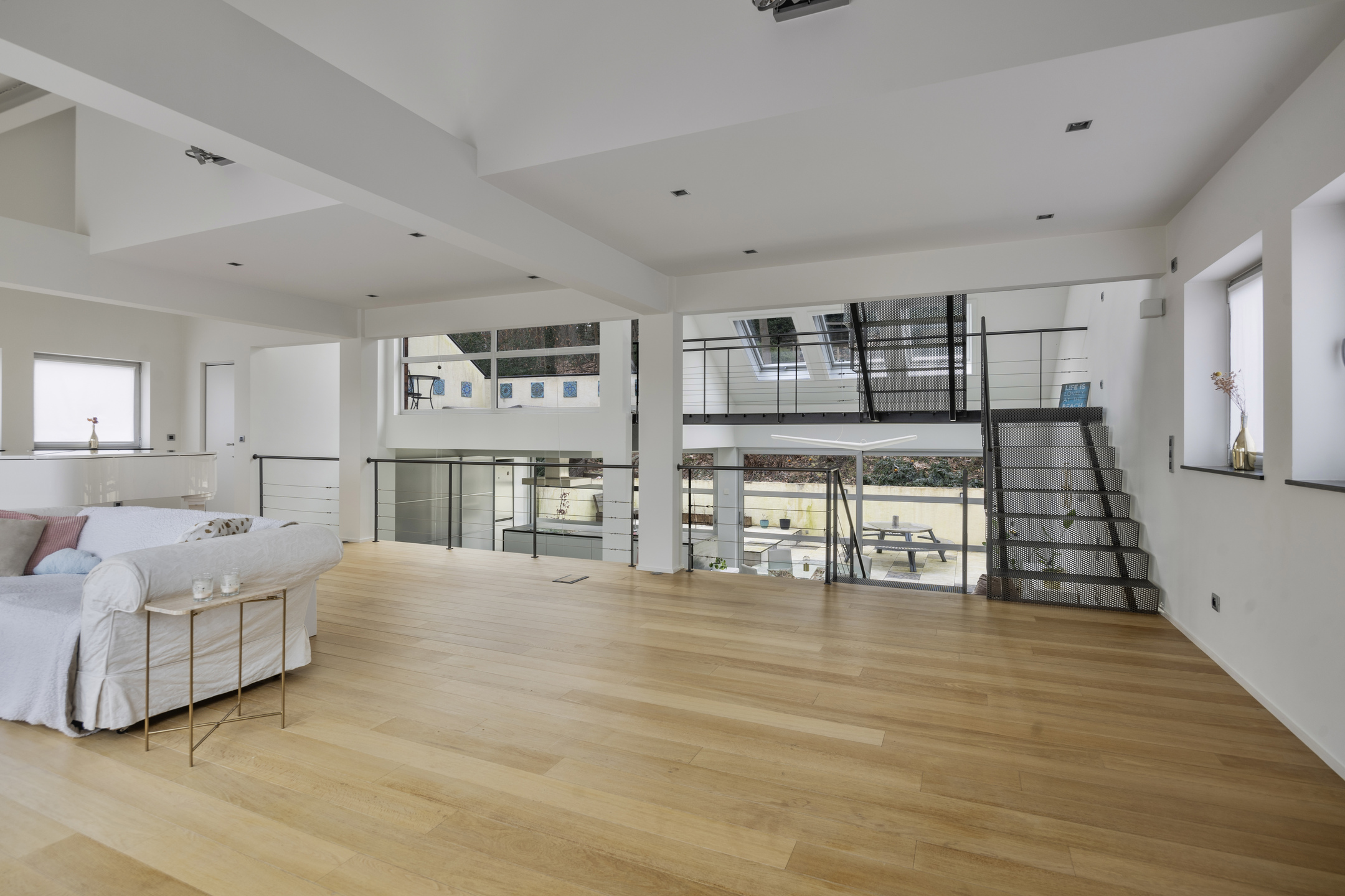 - Niveau +3: leefruimte / salon / TV-hoek / bureau . Baadt in het licht. Prachtig vergezicht langs alle kanten. Parket.