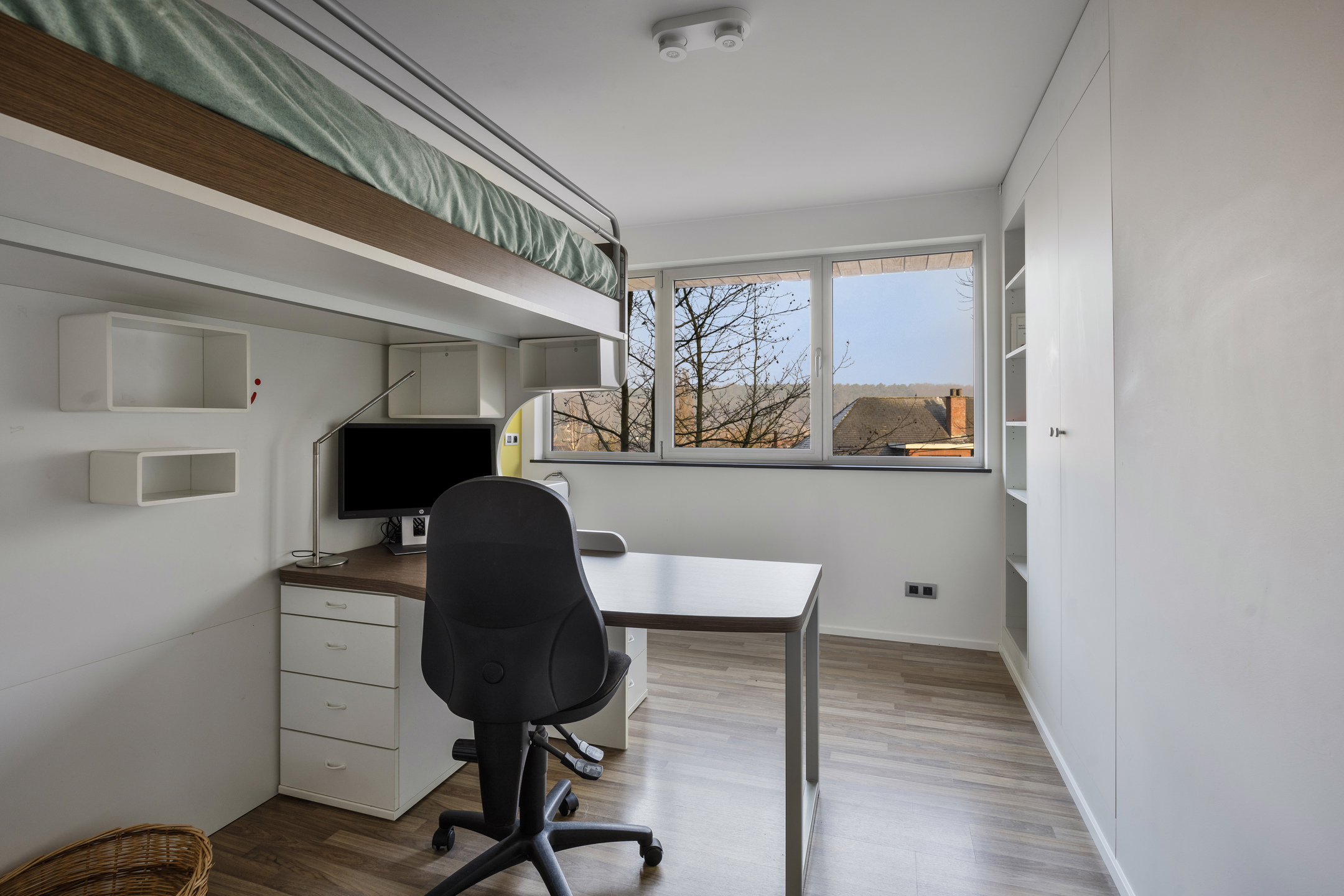 - Niveau +1: 3 kinderslaapkamers met elk hun eigen wastafel. Twee kamers beschikken ook over ingebouwde dressing. Douchekamer. Apart toilet. Gemeenschappelijke speelruimte/ bureau.