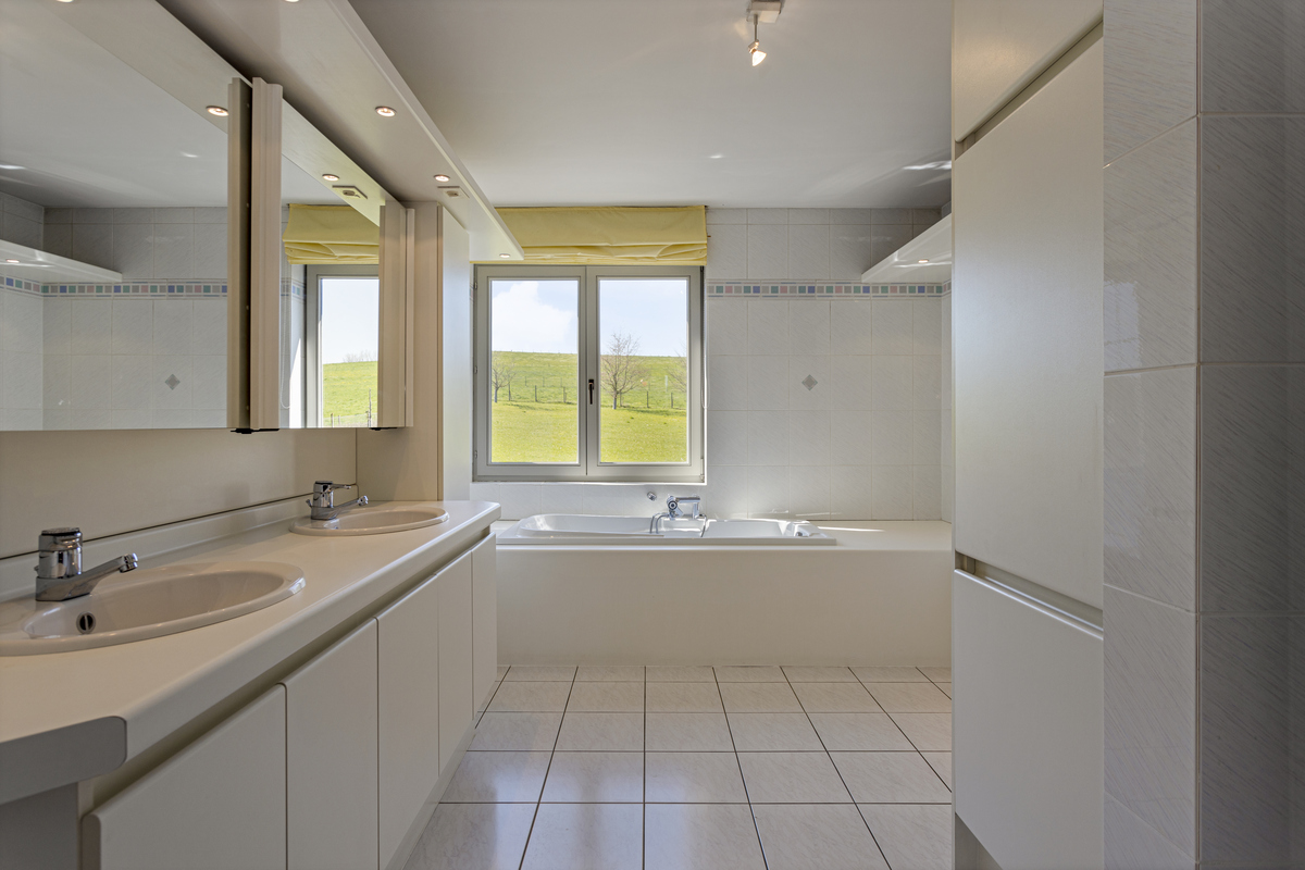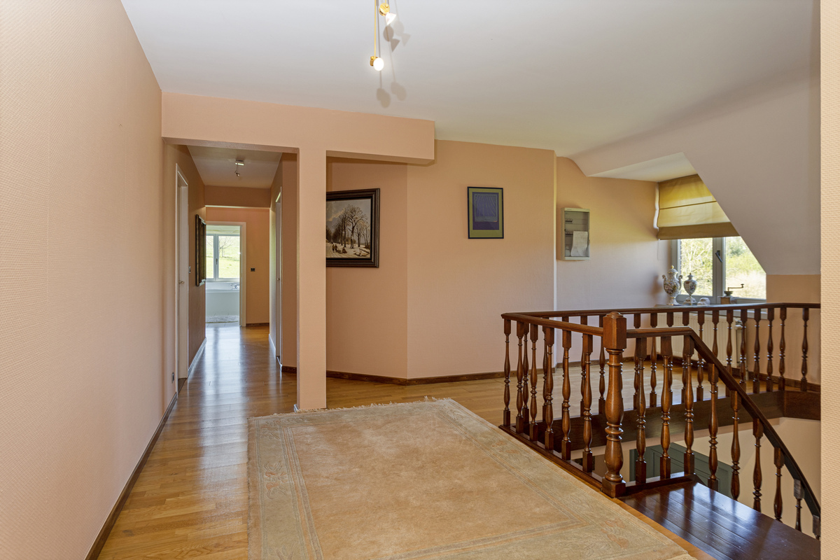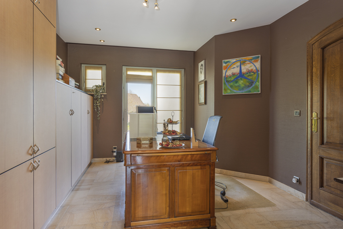 In het landelijke Neerijse bevindt zich een riant landhuis met overdekt zwembad op een domein van een 2,5 ha. Blijvend verzicht op natuurgebied. Op slechts 8 min van oprit Bertem (E40) of Oprit Leuven (E314). Ook Gasthuisberg of Imec bevinden zich slechts op 9 min. De woning zelf is zeer ruim met grote leefruimtes op het gelijkvloers incl. bureau en MBR met onsuite dressing en badkamer. Het overdekte zwembad is zeker de eye catcher met zijn openvouwende accordeondeuren naar het zuid gerichte terras. Verwarming van het zwembad met warmtepomp en zonnepanelen. Privacy gegarandeerd met de ruime tuin omringd door agrarisch waardevol gebied. Op de verdieping bevinden zich 6 slaapkamers en 2 extra badkamers. De 100 m2 zolderverdieping is momenteel niet in gebruik maar kan nog extra kamers of hobbyruimtes herbergen. De kelderruimte van 238 m2 omvat een geklimatiseerde wijnkelder, de technische installaties en vooral heel veel parkeerplaatsen en werkplaats. Contacteer ons (Hilde: 0476/279294 of hilde@immobesto.be) voor extra informatie en een eerste informatief gesprek. In collegiale samenwerking met DERCO Immo.