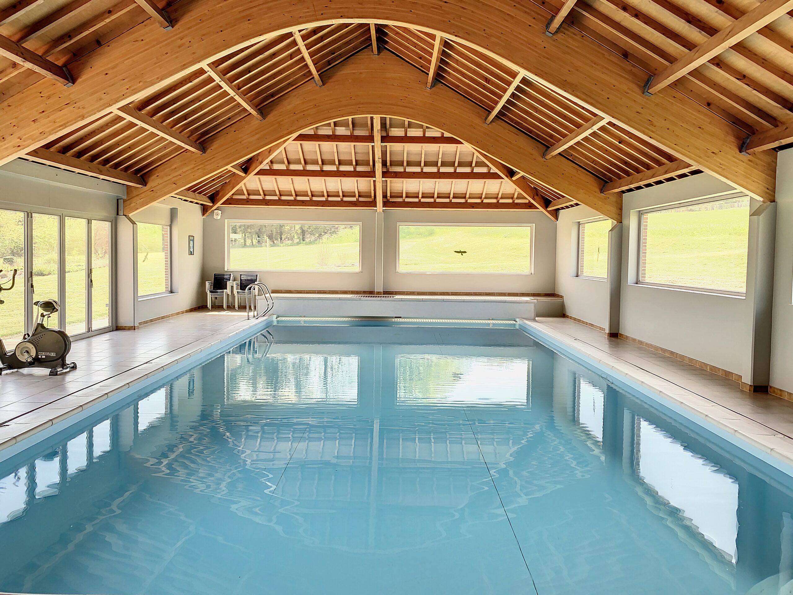 - Verwarming: Mazout en warmtepomp (zwembad en leefruimte)